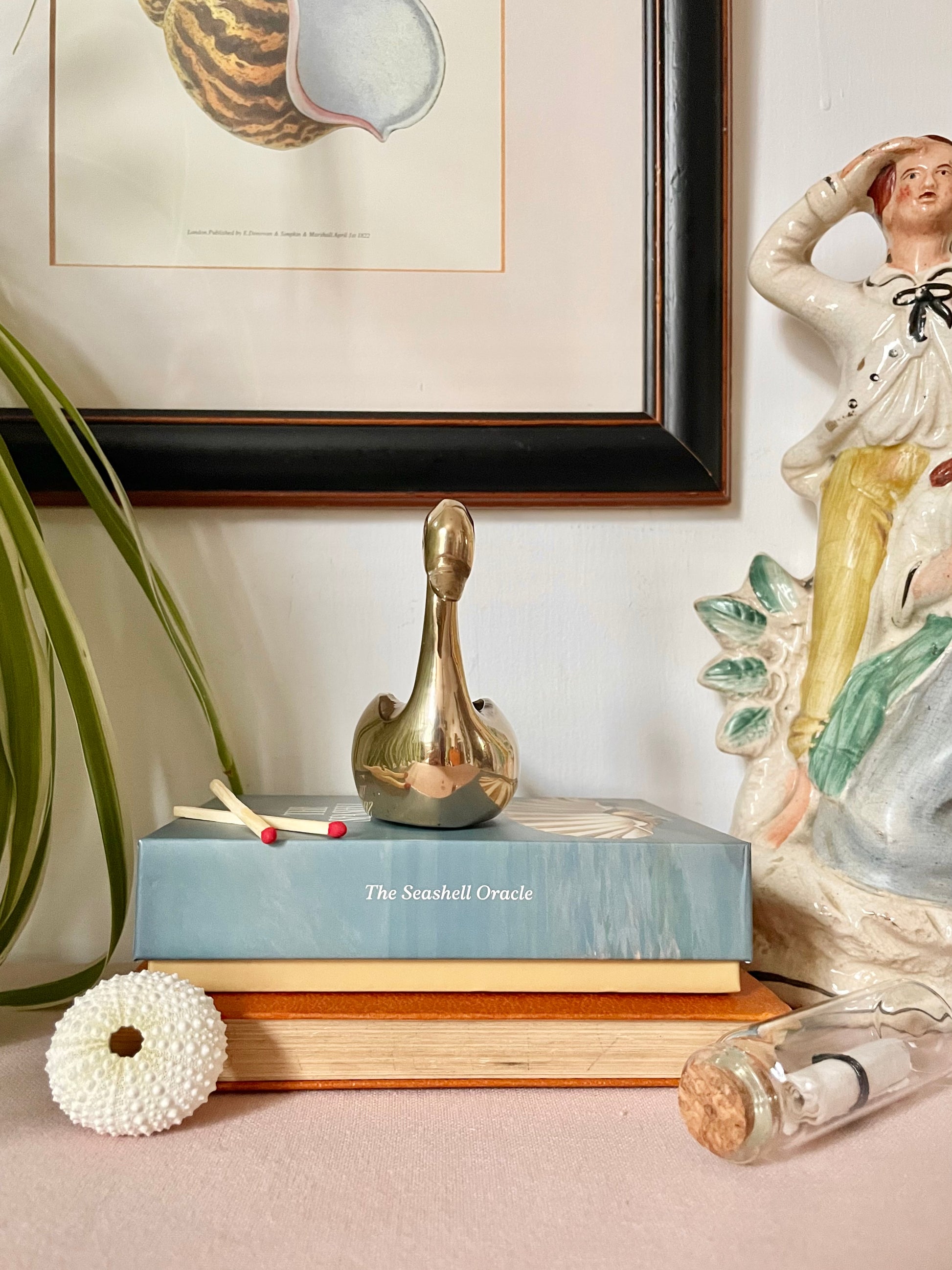 🦢A beautifully detailed brass swan, repurposed as a charming match holder. With its elegant curved neck and softly aged patina, it makes both a practical and decorative addition to a mantel, shelf or beside the fireplace.