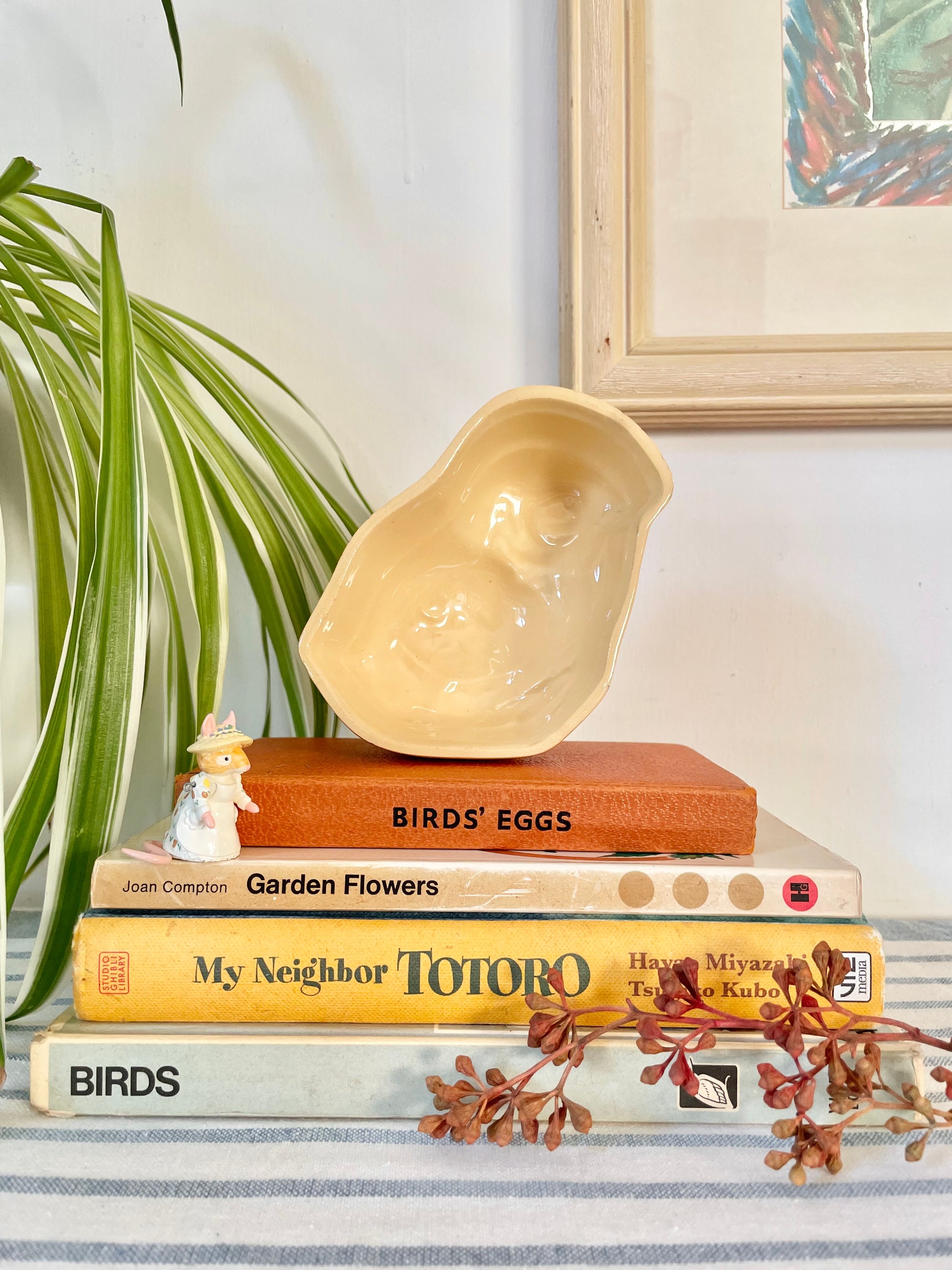 🐥Sweet little vintage jelly mould, modelled to create a charming chick shape. Its soft, buttery yellow colour is simply delightful, adding a cozy farmhouse or cottage touch to any shelf, kitchen, or display.